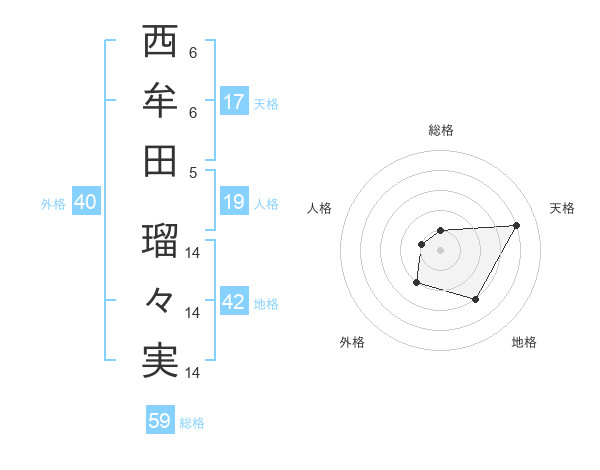 西牟田 瑠々実さんを姓名の画数から五運を鑑定