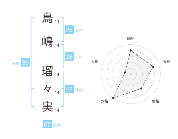 鳥嶋 瑠々実さんの総格は67画の4点!