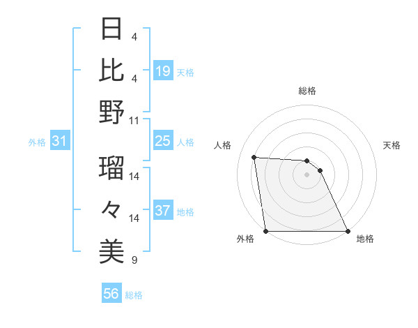 日比野 瑠々美さんを姓名の画数から五運を鑑定