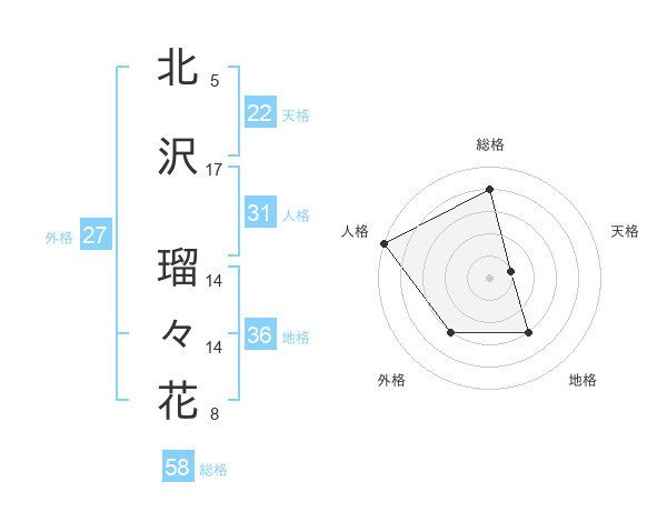 北沢 瑠々花さんを姓名の画数から五運を鑑定