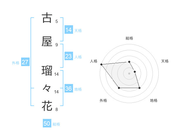 古屋 瑠々花さんを姓名の画数から五運を鑑定
