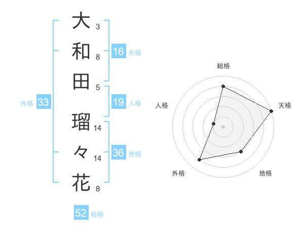 大和田 瑠々花さんを姓名の画数から五運を鑑定