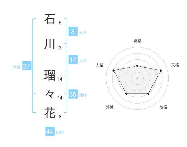 石川 瑠々花さんの総格は44画の2点