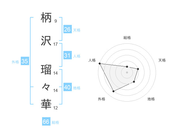 柄沢 瑠々華さんを姓名の画数から五運を鑑定