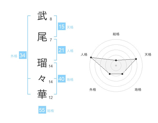 武尾 瑠々華さんの総格は55画の1点!