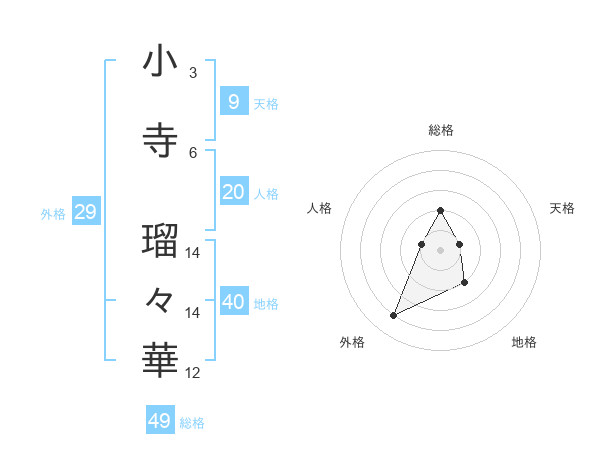 小寺 瑠々華さんの総格は49画の2点!
