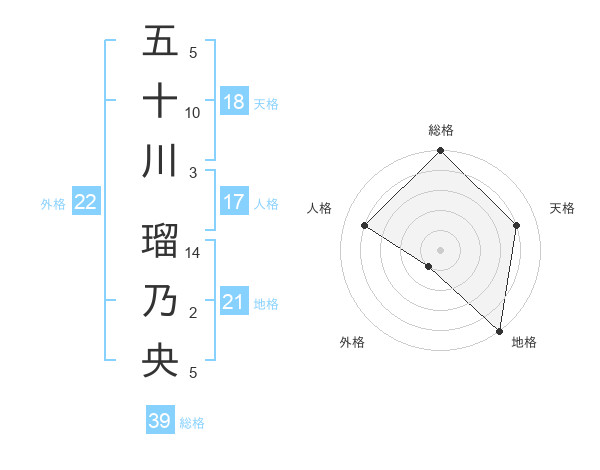 五十川 瑠乃央さんを姓名の画数から五運を鑑定
