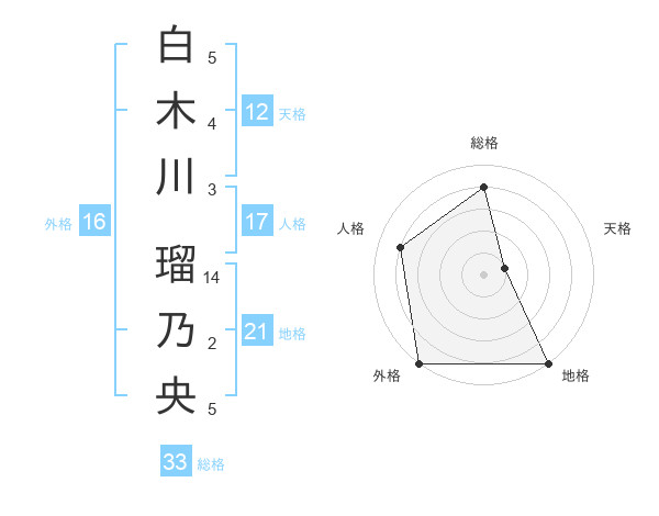 白木川 瑠乃央さんを姓名の画数から五運を鑑定