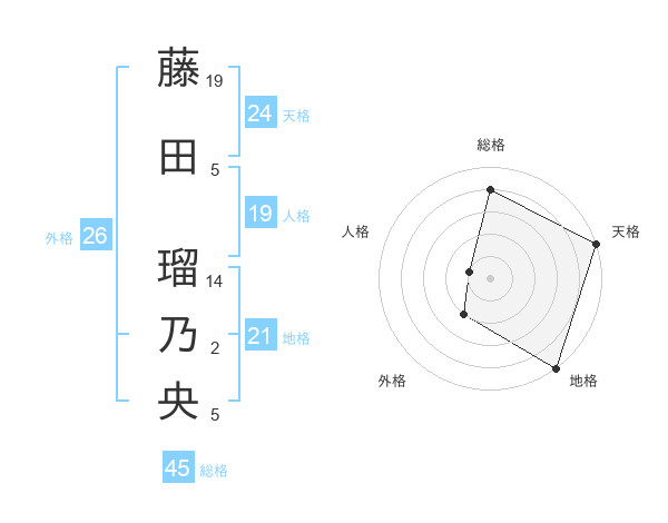 藤田 瑠乃央さんを姓名の画数から五運を鑑定