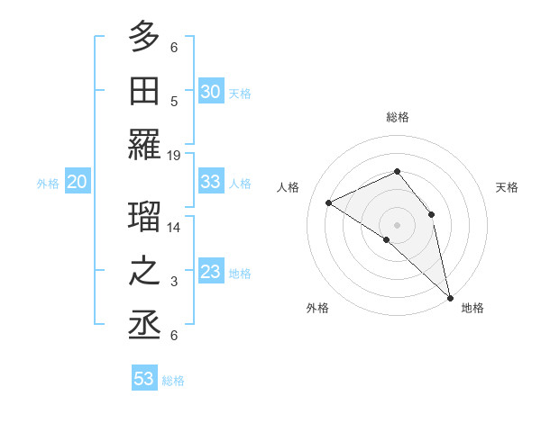 多田羅 瑠之丞さんの総格は53画の3点!