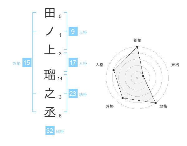 田ノ上 瑠之丞さんの総格は32画の5点!