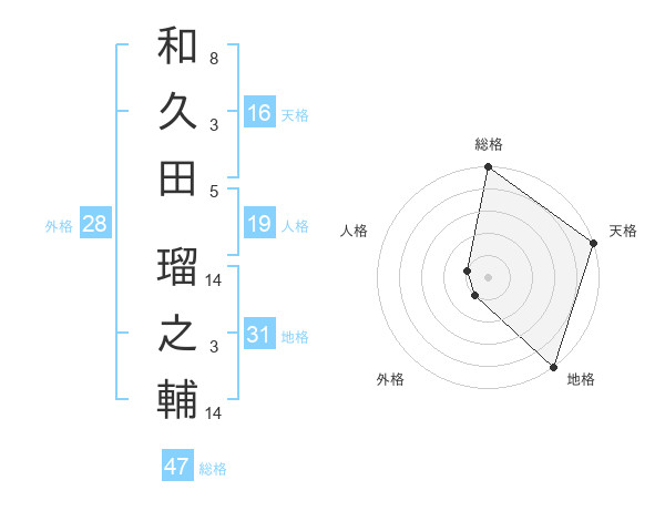 和久田 瑠之輔さんを姓名の画数から五運を鑑定