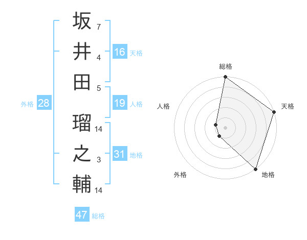 坂井田 瑠之輔さんの総格は47画の5点!