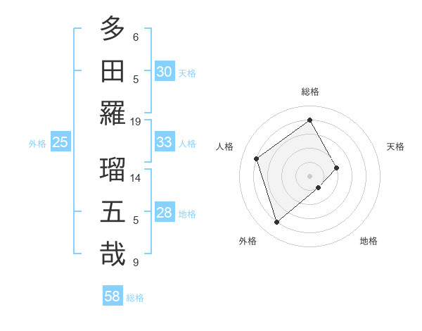 多田羅 瑠五哉さんの総格は58画の4点!