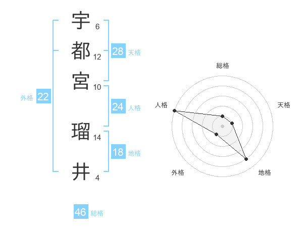 宇都宮 瑠井さんを姓名の画数から五運を鑑定
