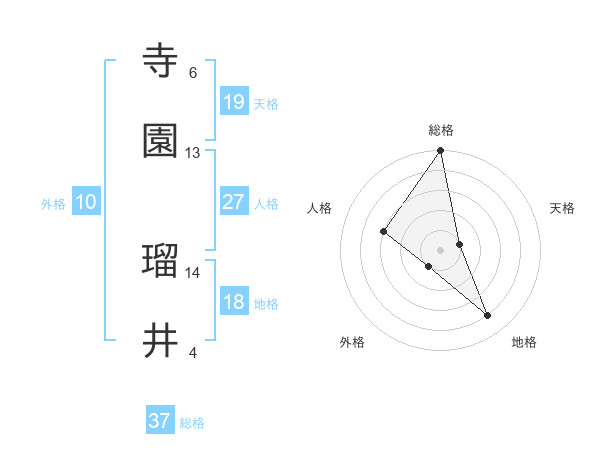 寺園 瑠井さんの総格は37画の5点!
