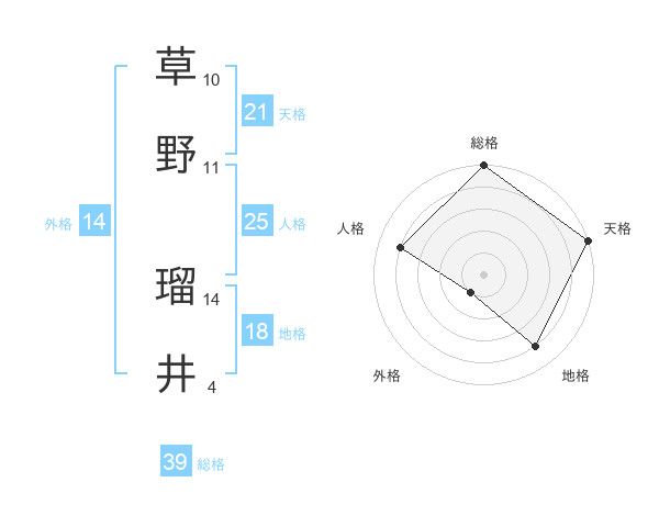 草野 瑠井さんを姓名の画数から五運を鑑定