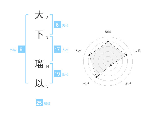 大下 瑠以さんを姓名の画数から五運を鑑定