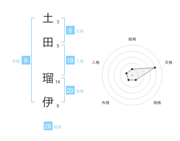 土田 瑠伊さんを姓名の画数から五運を鑑定