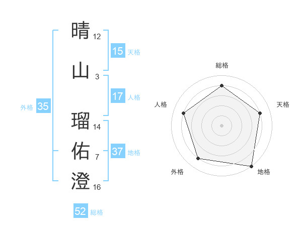 晴山 瑠佑澄さんの総格は52画の4点!