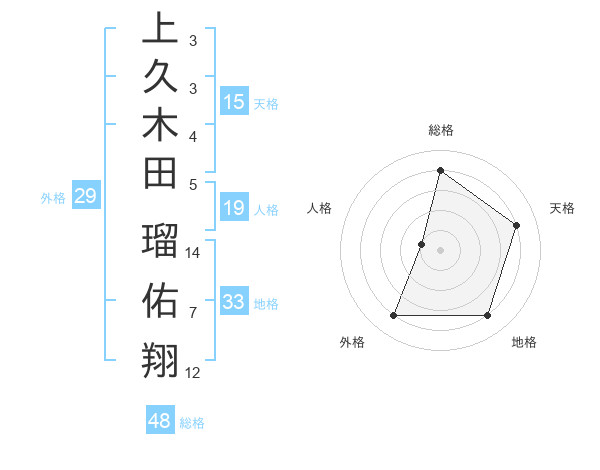 上久木田 瑠佑翔さんを姓名の画数から五運を鑑定
