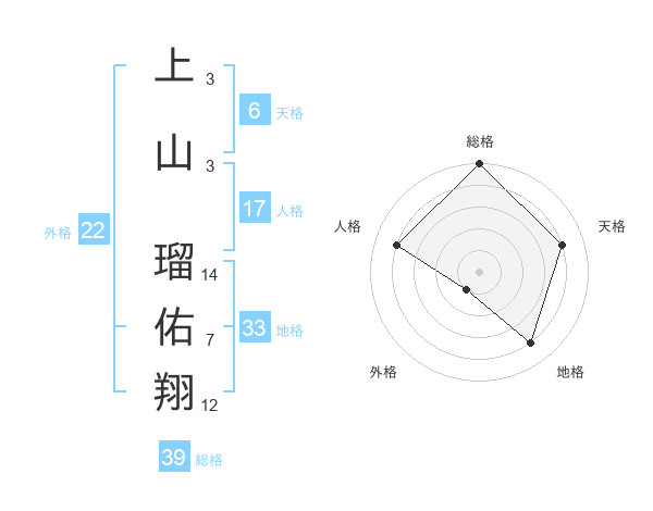 上山 瑠佑翔さんを姓名の画数から五運を鑑定