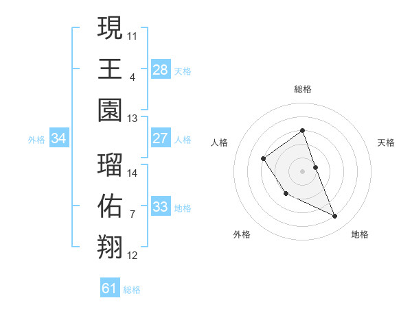 現王園 瑠佑翔さんを姓名の画数から五運を鑑定