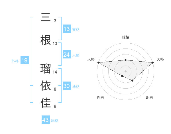 三根 瑠依佳さんを姓名の画数から五運を鑑定