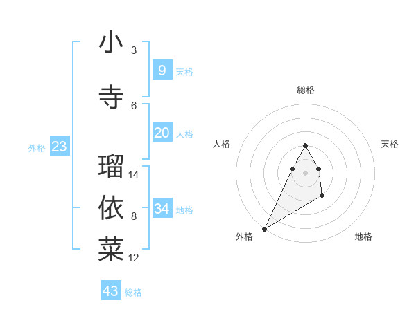 小寺 瑠依菜さんを姓名の画数から五運を鑑定