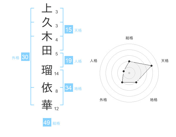 上久木田 瑠依華さんの天格は15画の4点!