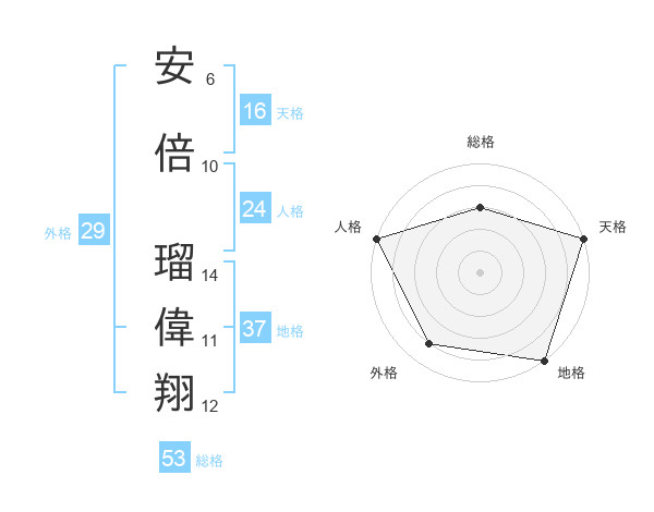 安倍 瑠偉翔さんの総格は53画の3点!