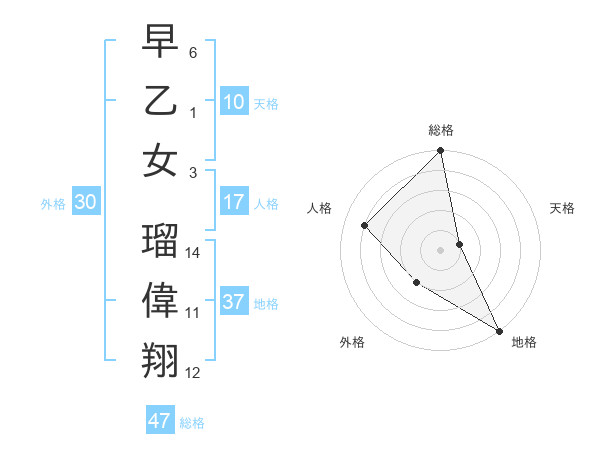 早乙女 瑠偉翔さんの総格は47画の5点!