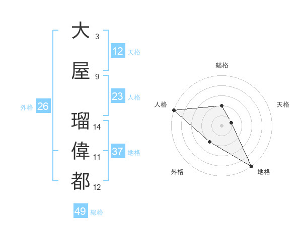 大屋 瑠偉都さんを姓名の画数から五運を鑑定
