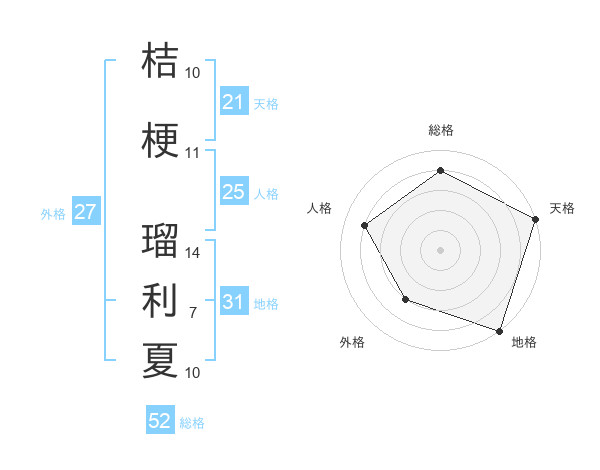 桔梗 瑠利夏さんを姓名の画数から五運を鑑定