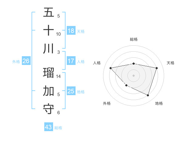 五十川 瑠加守さんの総格は43画の2点!
