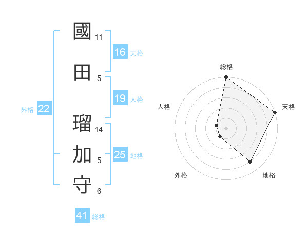 國田 瑠加守さんを姓名の画数から五運を鑑定