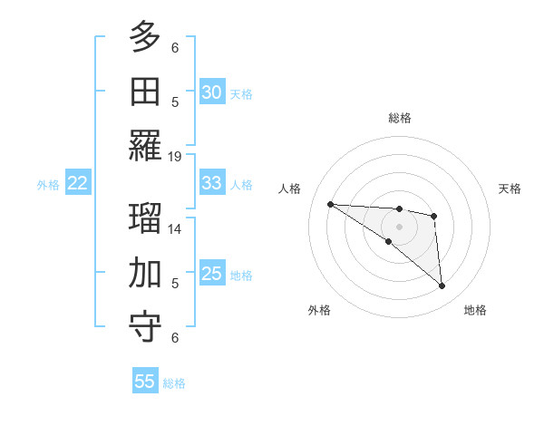 多田羅 瑠加守さんを姓名の画数から五運を鑑定