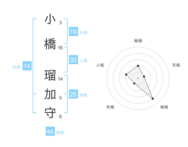 小橋 瑠加守さんを姓名の画数から五運を鑑定