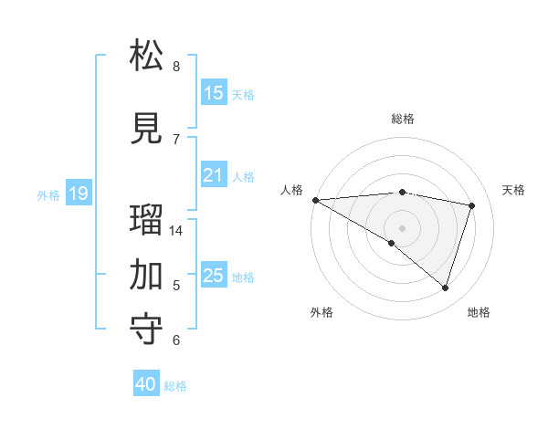 松見 瑠加守さんの天格は15画の4点!