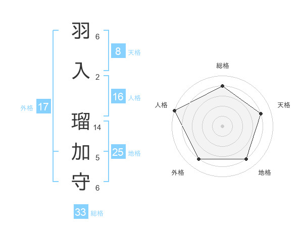 羽入 瑠加守さんを姓名の画数から五運を鑑定