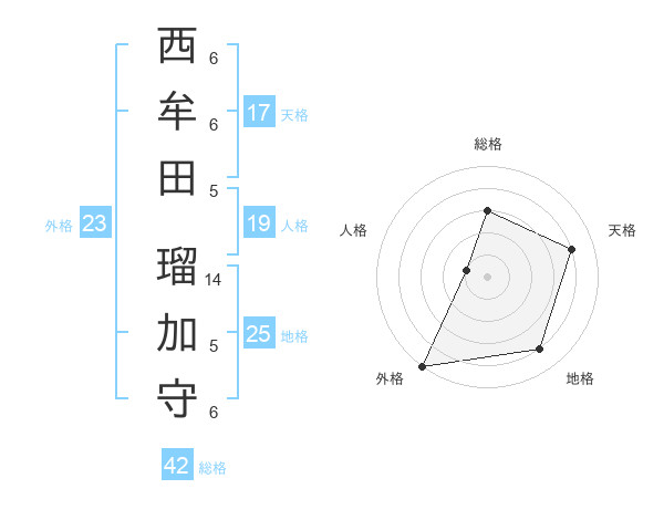 西牟田 瑠加守さんを姓名の画数から五運を鑑定