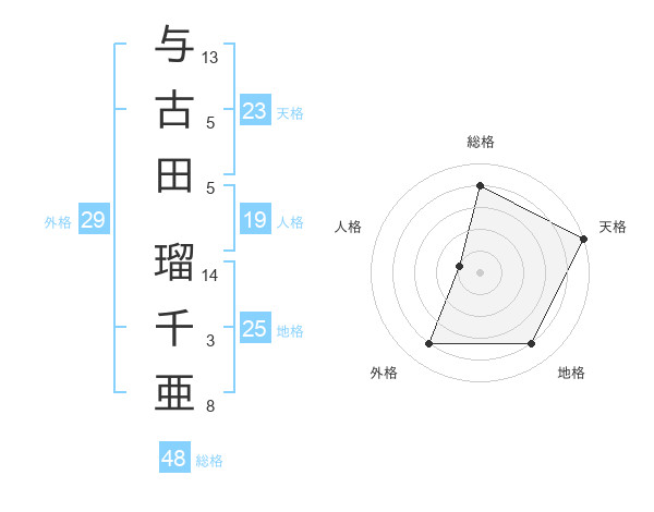 与古田 瑠千亜さんを姓名の画数から五運を鑑定