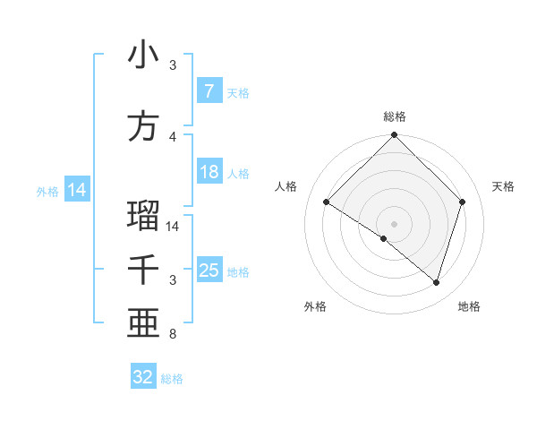 小方 瑠千亜さんを姓名の画数から五運を鑑定