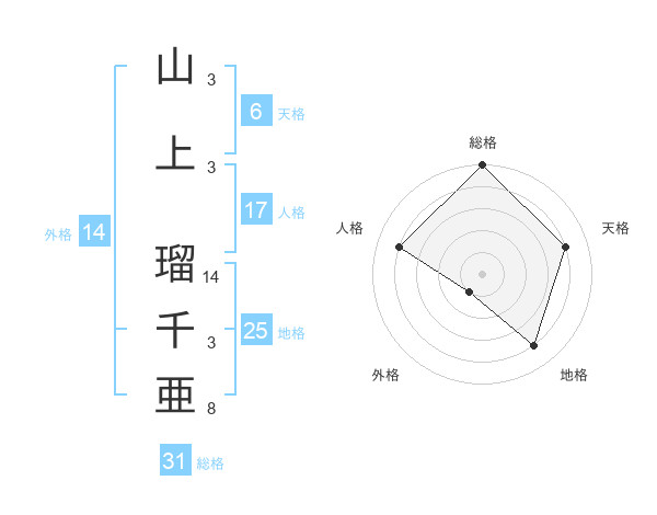 山上 瑠千亜さんの総格は31画の5点