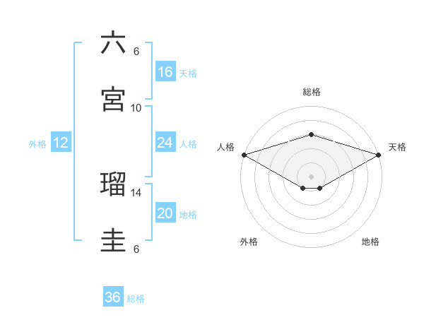六宮 瑠圭さんの天格は16画の5点!