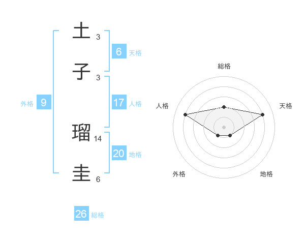 土子 瑠圭さんの総格は26画の2点!