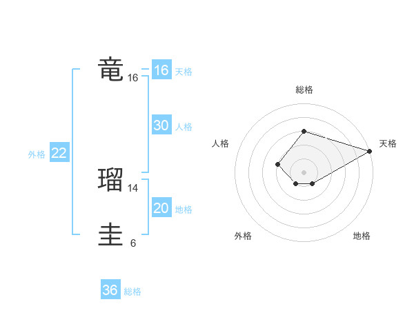 竜 瑠圭さんの天格は16画の5点!