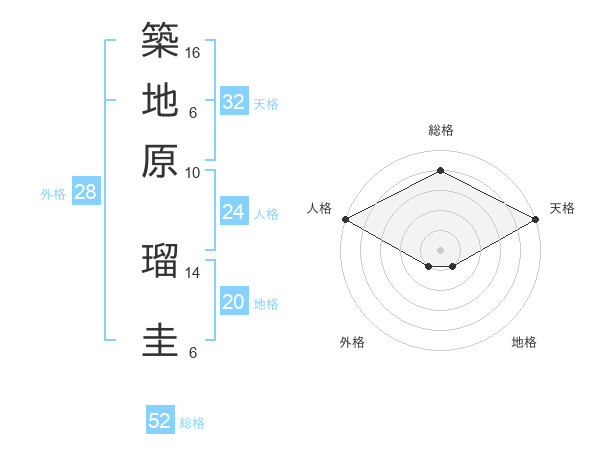 築地原 瑠圭さんの天格は32画の5点!