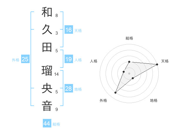 和久田 瑠央音さんの天格は16画の5点!