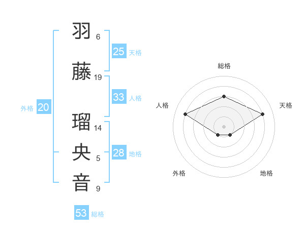 羽藤 瑠央音さんを姓名の画数から五運を鑑定